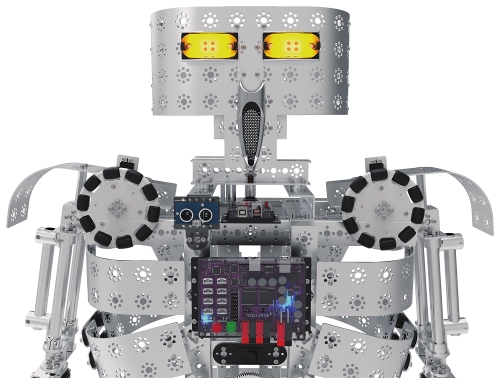 Идеальный в качестве завершающего проекта или модели для кружка "Умелые руки", Мистер Робот в комплекте продаётся со всем, что нужно, чтобы собрать и запрограммировать модель робота высотой около полутора метров, способную перемещаться передним и задним ходом, поднимать плечи, сгибать локти, поворачивать голову, смеяться, говорить "hello" ("привет") и "thank you" ("спасибо"), не говоря уже о том, чтобы разжечь сильнейший интерес ваших учеников к робототехнике.