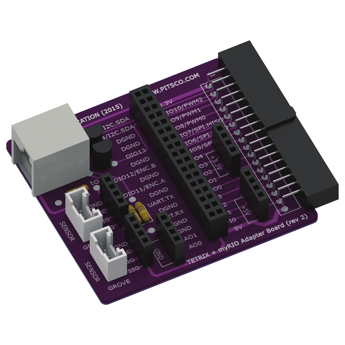 Адаптер платы TETRIX® + myRIO предназначен для простого подключения контроллеров двигателя TETRIX к NI myRIO. Он также содержит встроенную схему смещения логического уровня, семейство соединений Grove, порт расширения Gnd, порт расширения I / O для подключения ввода-вывода на 34 вывода, порт расширения +3,3 V и порт расширения +5 В.