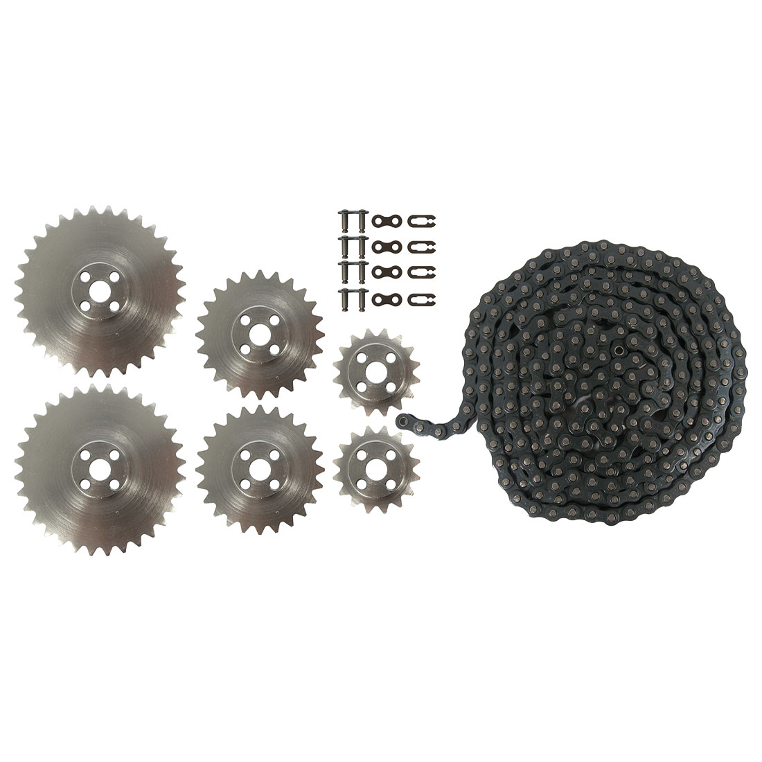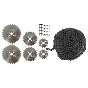 Включает в себя звёздочки всех размеров и полутораметровую стальную цепь, так что вы не только получаете всё, что нужно для создания цепного привода, но и ещё и по сходной цене.