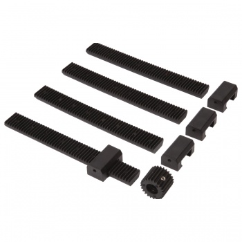 • Добавляет к вашим робототехническим творениям конвейерную систему или вилочный подъёмник. • Реечные передачи можно уложить конец к концу или использовать по отдельности, прикрепив к конструктивным элементам. • Включает в себя 4 реечные передачи из стеклонейлона (длиной 5"), 4 ползуна с из стеклонейлона и 1 ведущую шестерню из алюминия. |