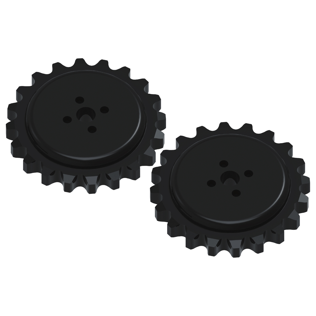 Эти колеса представляют собой ведущую систему для гусениц танков. Их можно прикрепить к двигателям постоянного тока, ступицам двигателей и сервоприводам серии TETRIX®. Каждая звездочка имеет 20 зубьев.